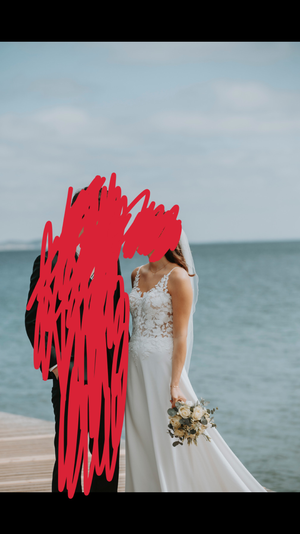 Smuk brudekjole fra TP kjoler str. S (brud var 168 cm + et par centimeter fra sko). Den har det smukkeste lange slæb med blonder i kanten. Og blonder fra hoften og op over brystet. Nypris var 7000 kr. + 1600 kr. hos skrædder